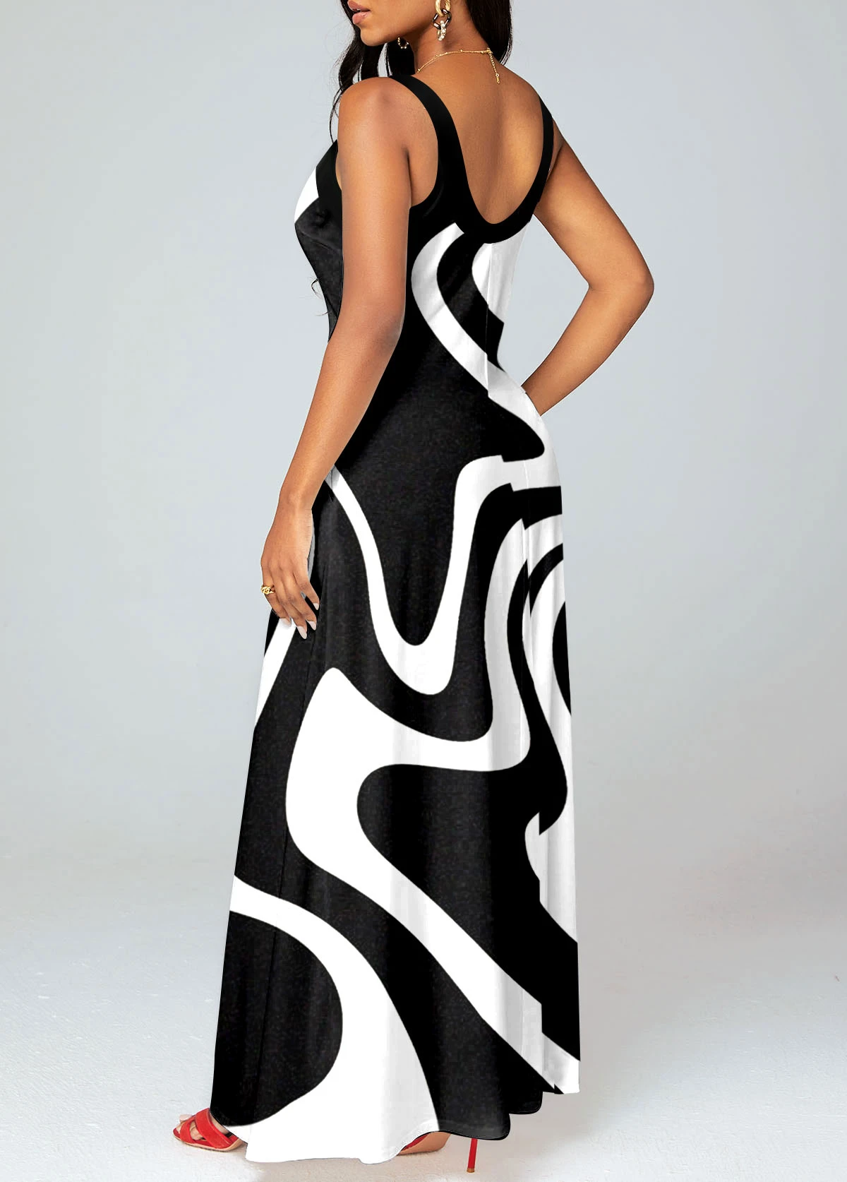Black Criss Cross Geometric Print Maxi Dress