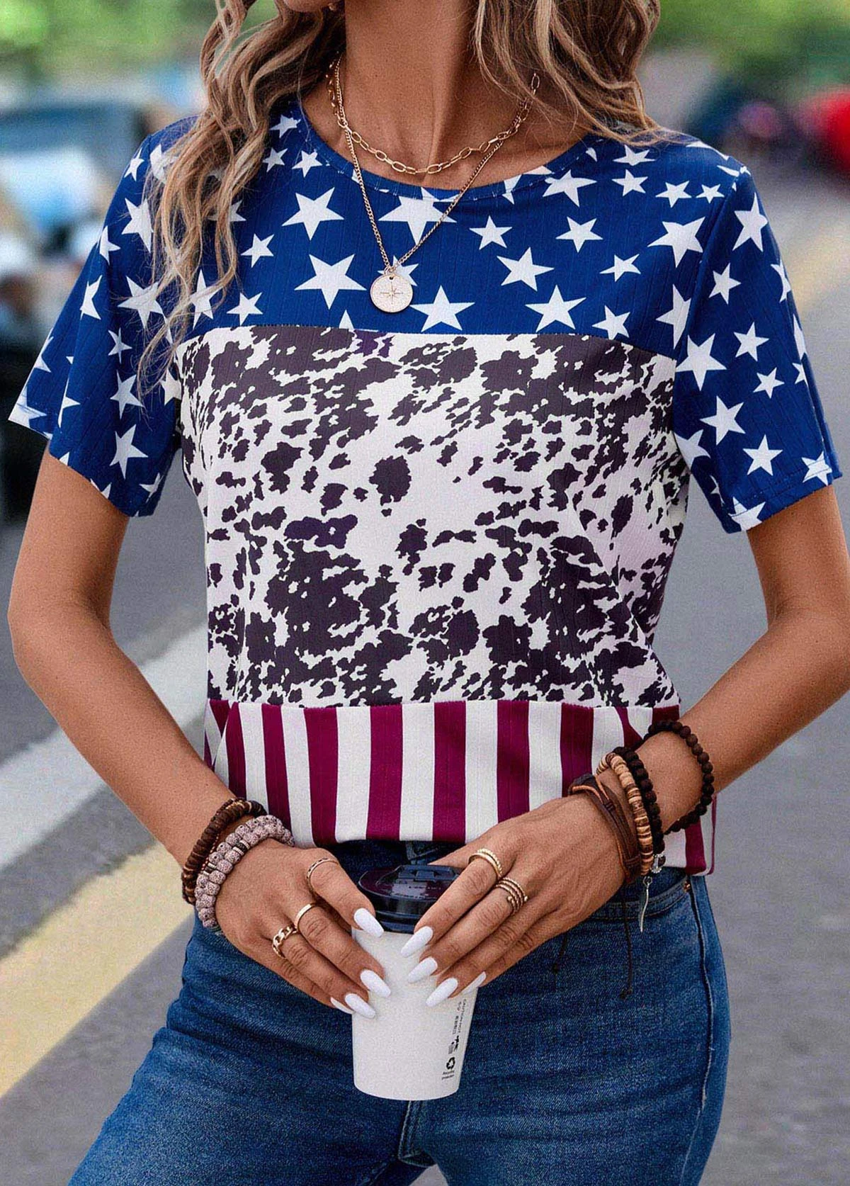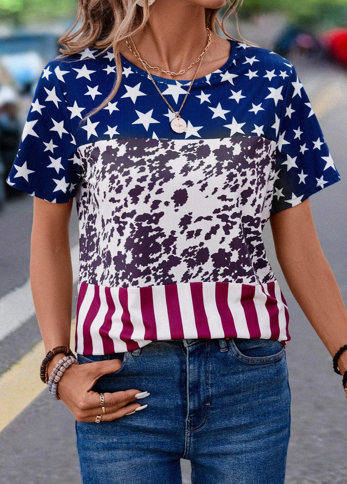 Blue Lightweight Flag Print Short Sleeve T Shirt