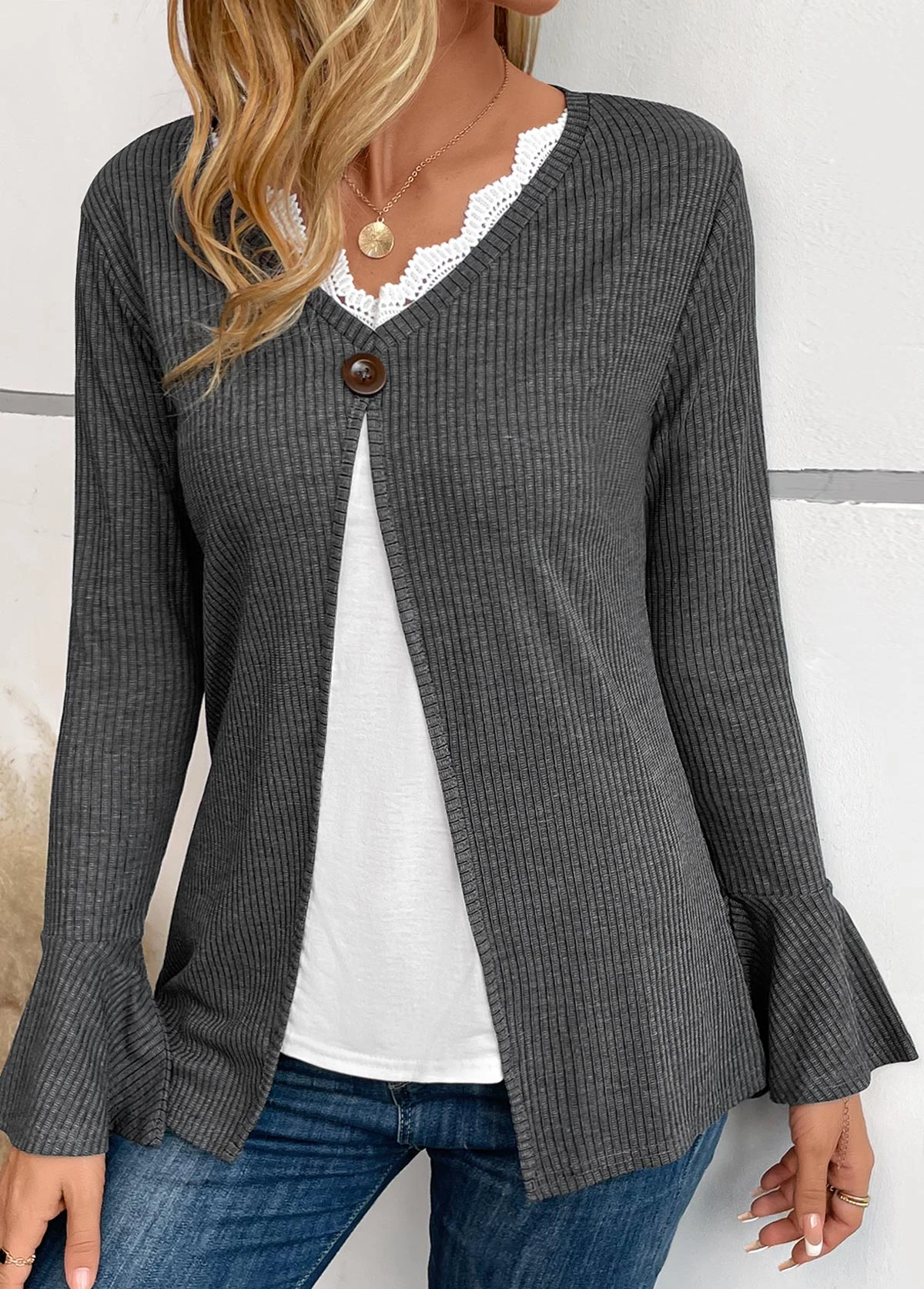 - Design Selling Point :Patchwork,Lace,Button,Fake 2in1