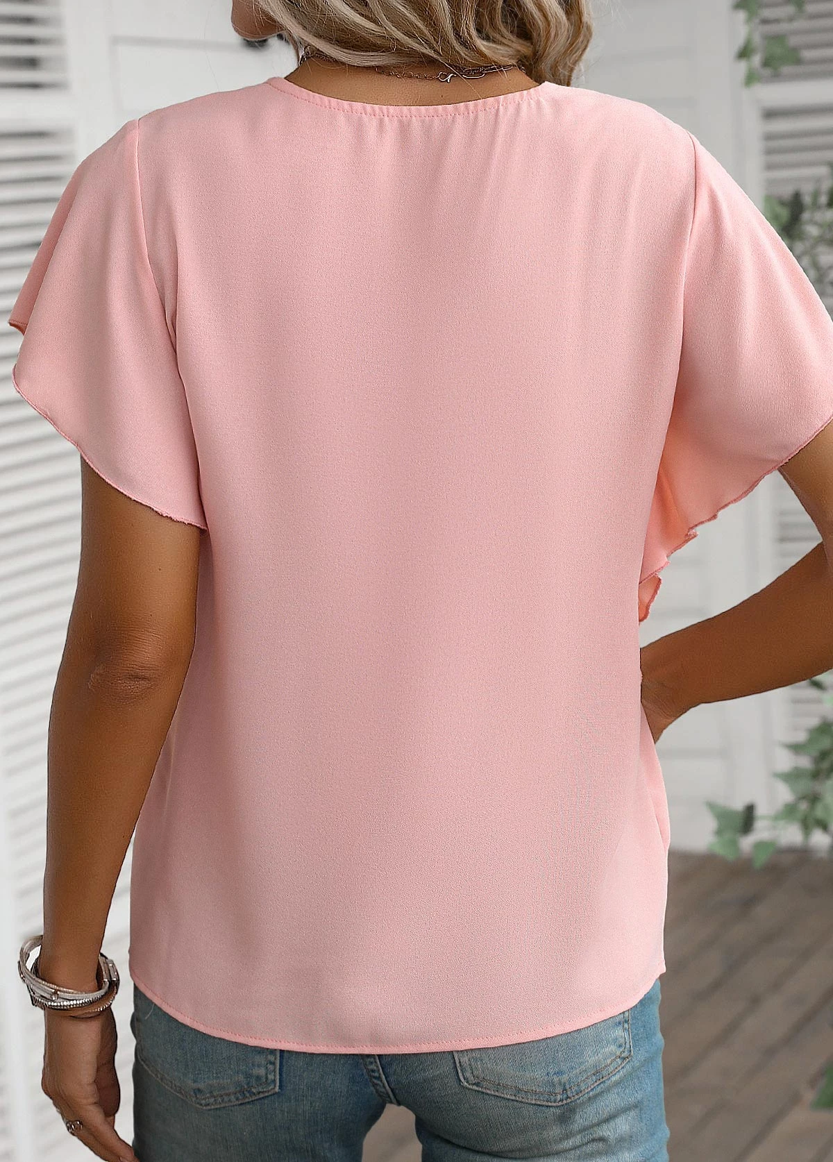 Be the first to review “Dusty Pink Ruffle Short Sleeve V Neck Blouse” Cancel reply