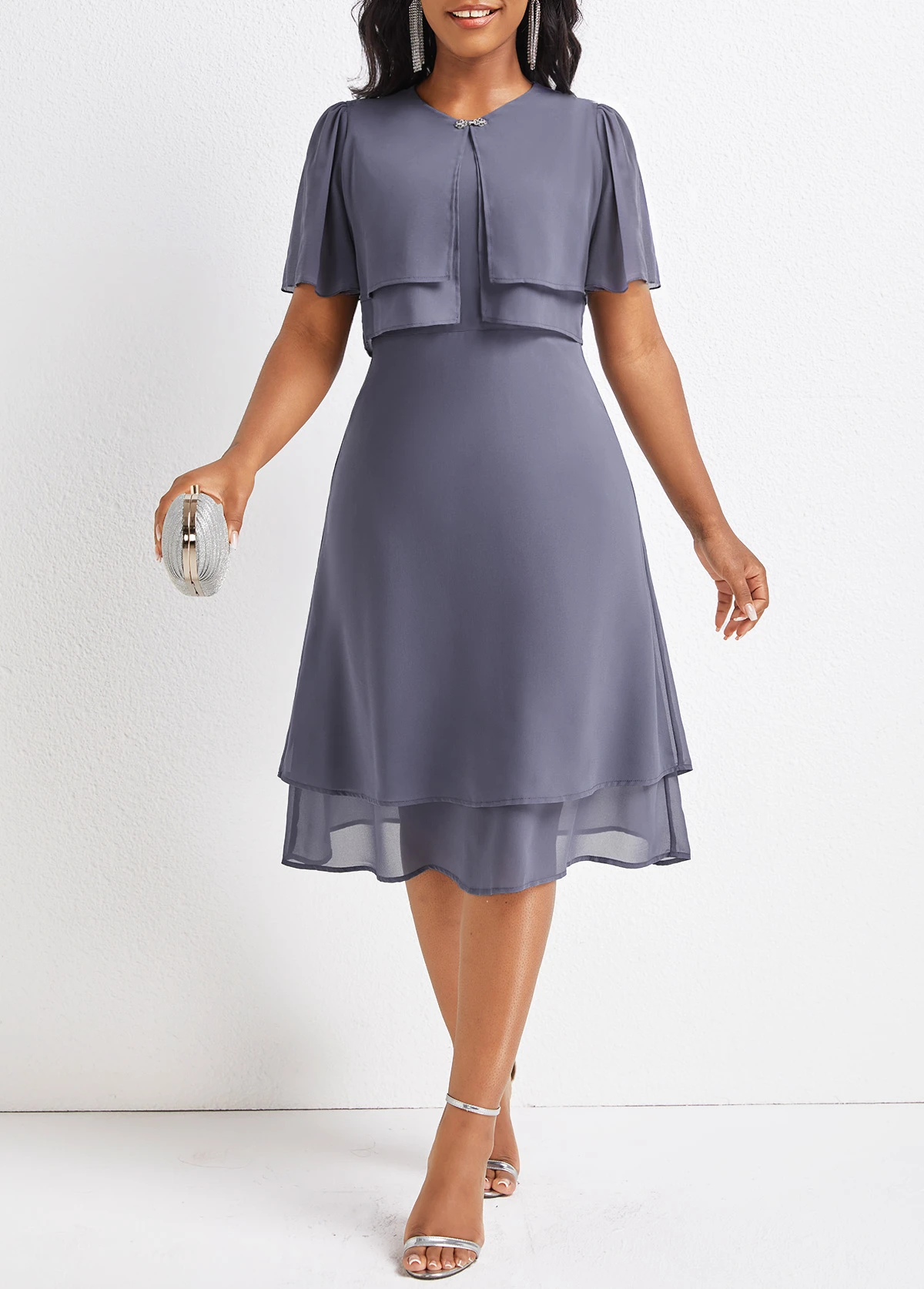 Be the first to review “Dusty Purple Layered Short Sleeve Round Neck Dress” Cancel reply