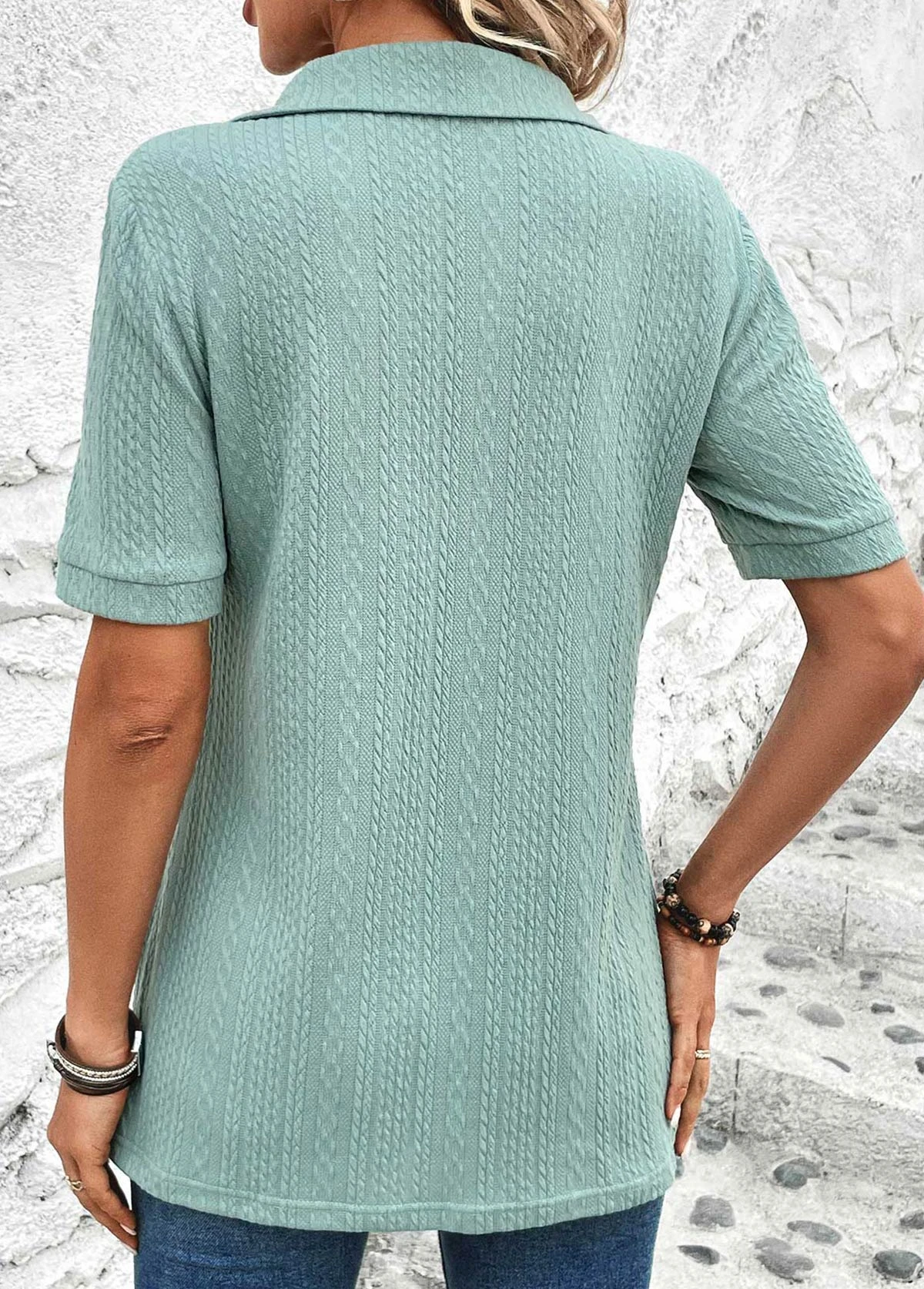 Be the first to review “Mint Green Eyelet Short Sleeve Shirt Collar Blouse” Cancel reply