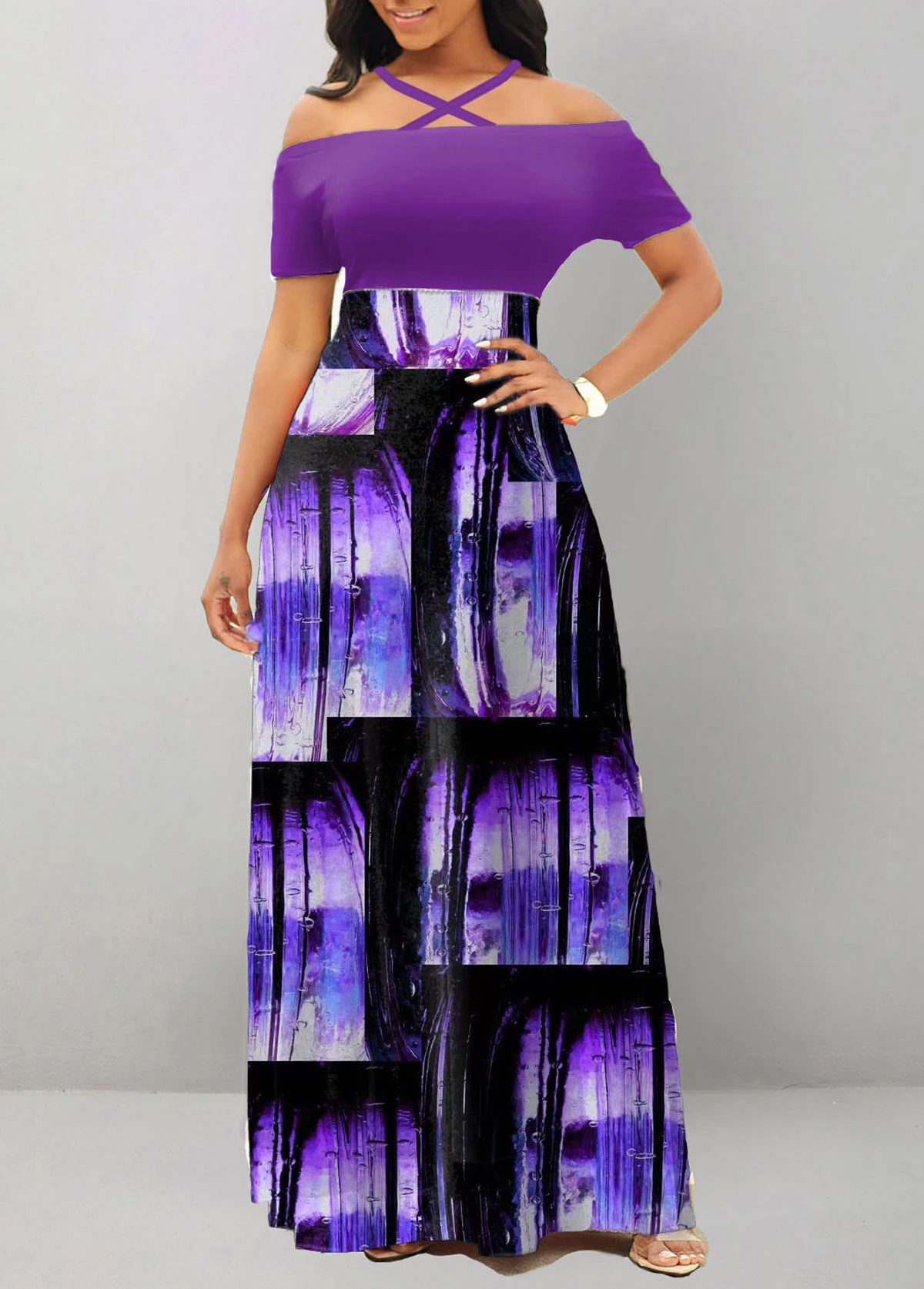 Purple Criss Cross Ombre Short Sleeve Maxi Dress