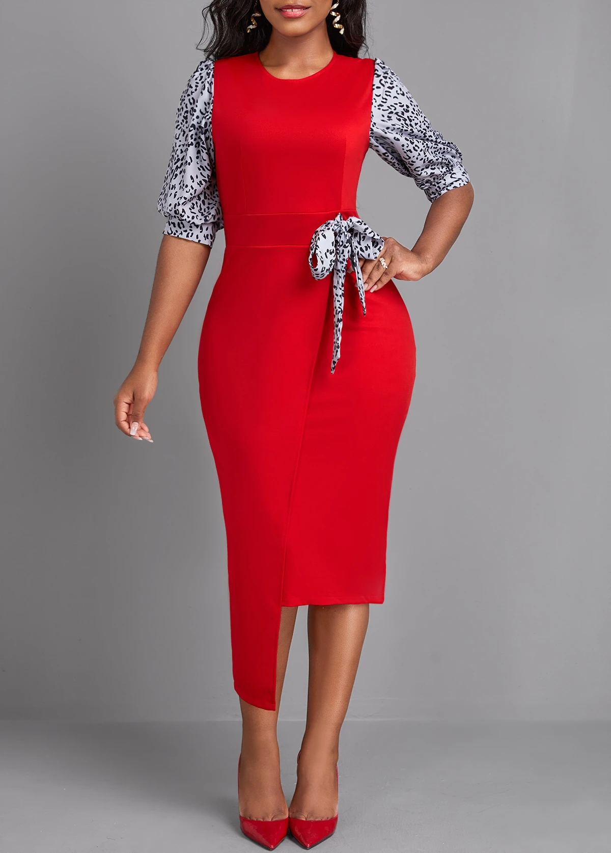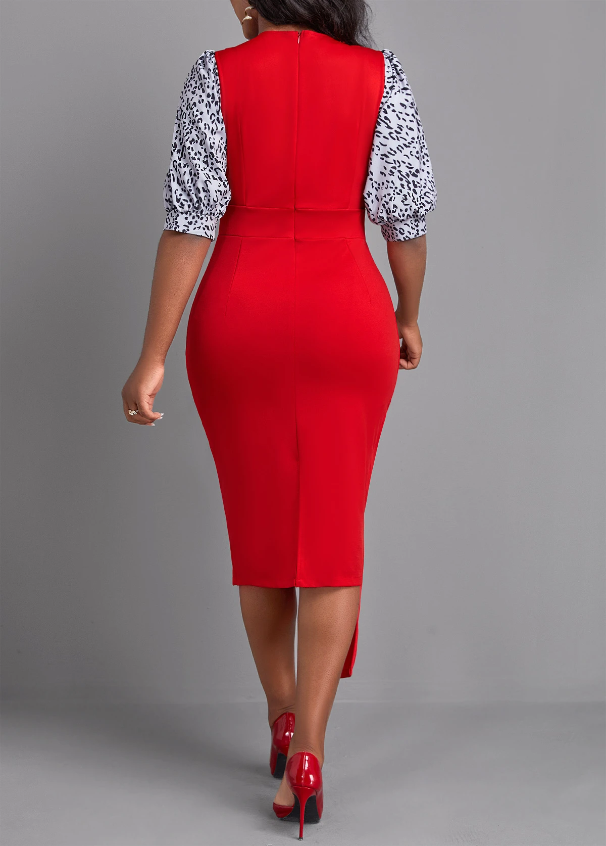 Red Leopard Half Sleeve Round Neck Bodycon Dress