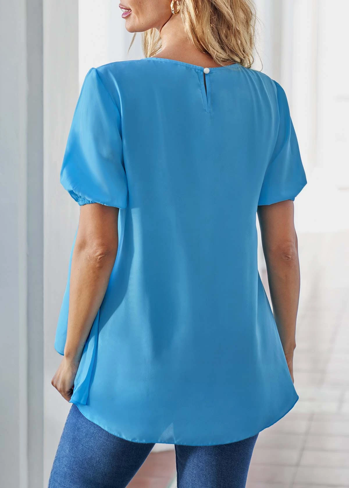 Be the first to review “Short Sleeve Sky Blue Layered Hem Blouse” Cancel reply