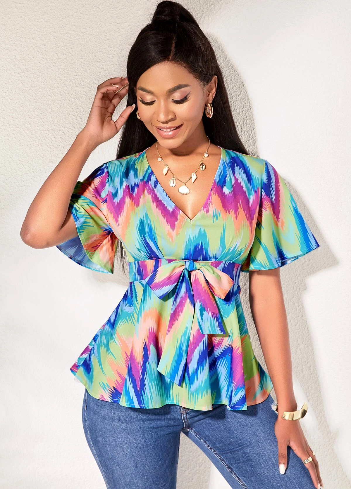 Be the first to review “V Neck Bowknot Short Sleeve Blouse” Cancel reply
