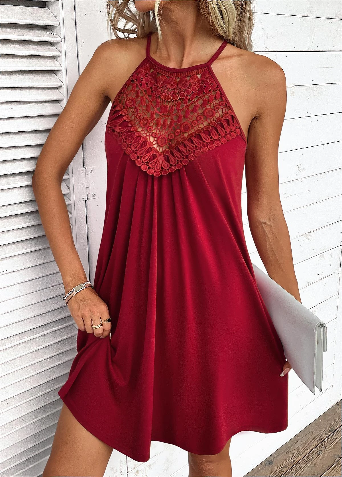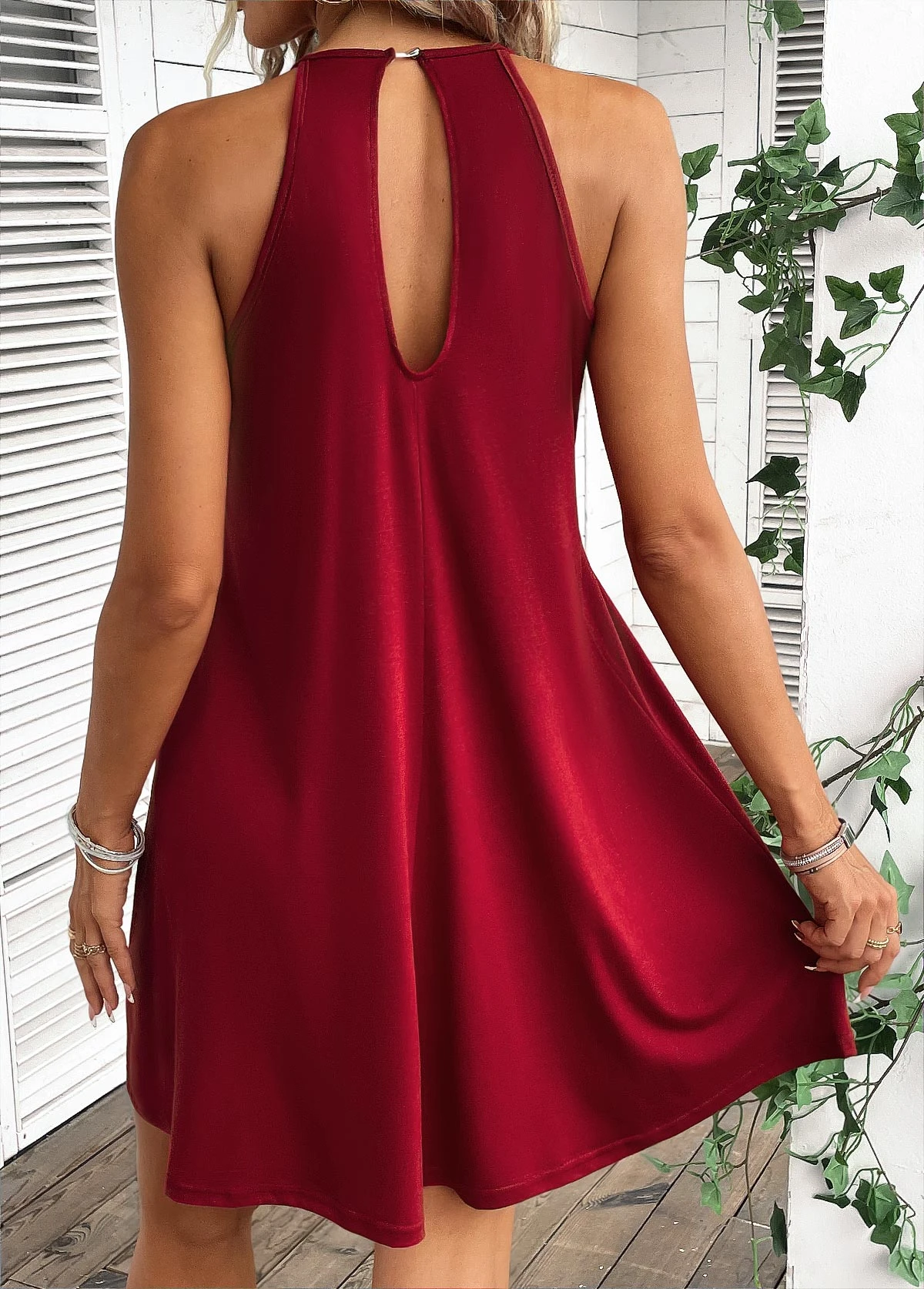 Wine Red Patchwork Short A Line Sleeveless Dress